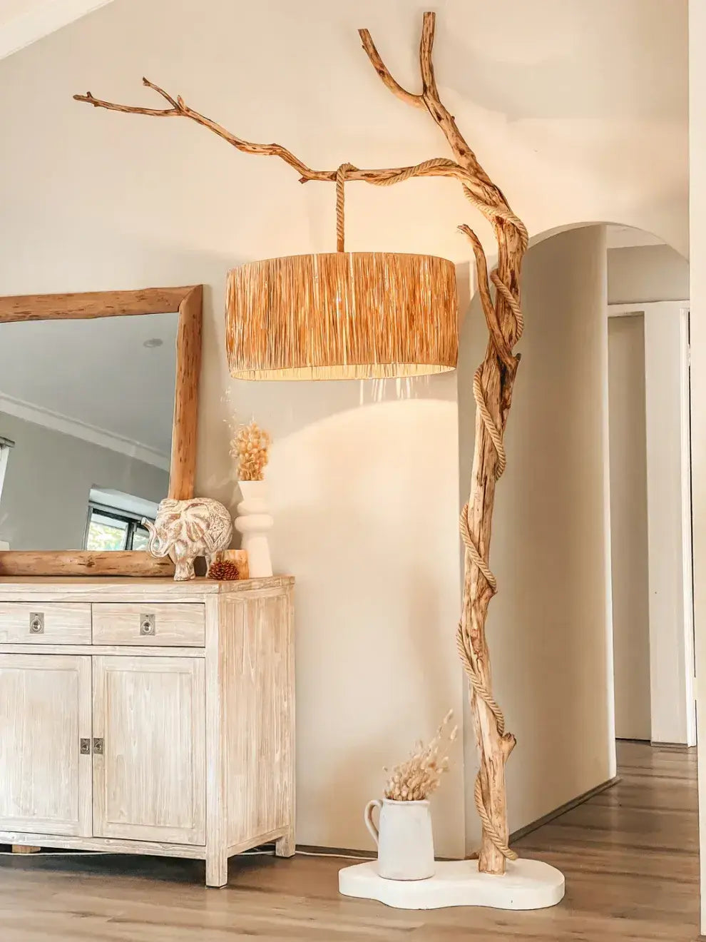 The harmonious dance of shadow and light through the natural fibers of the shade casts mesmerizing patterns, elevating the visual appeal of your space and creating a timeless atmosphere.